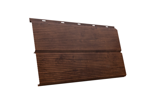 - В отличие от облицовки фасада деревом, металлический сайдинг «ЭкоБрус GL» прост в монтаже и не требует дополнительного послемонтажного ухода.
