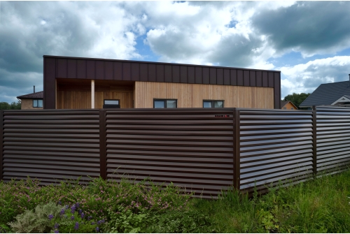 А благодаря защитно-декоративному полимерному покрытию, забор-жалюзи прослужит и сохранит свой первоначальный внешний вид даже спустя длительное время после установки.