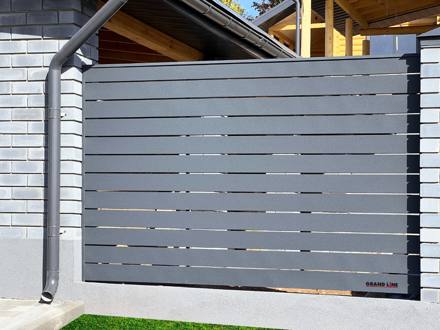Ламель лицевая 50 забора жалюзи Texas 0.5 Drap с пленкой RAL 7024 мокрый асфальт