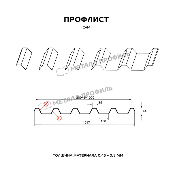 Профлист МЕТАЛЛ ПРОФИЛЬ С-44х1000-B (PureTech_Mat-20-7024-0,5) широко применяется в Нижнем Новгороде для монтажа профилированного листа. Представляет собой лист оцинкованной стали с покрытием. Общая толщина стальной основы с цинковым и декоративно-защитным покрытием — 0.5 мм.После проката на специальном оборудовании металл приобретает рисунок из ритмичных волн. Такая конфигурация придает профилю несущую способность.